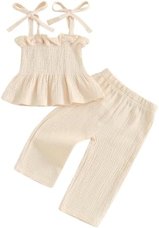 Infant Baby Toddler Girls Clothes Solid Color Sleeveless Camisole Linen Pants Set Baby Summer Outfits