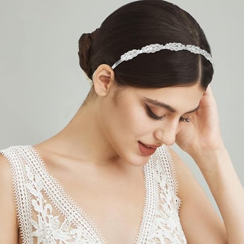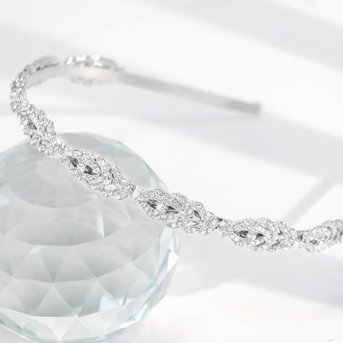 Bride Headpiece - Rhinestone Crystal Wedding Headband for Women, Diamond Headpiece for Bride (Silver)
