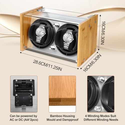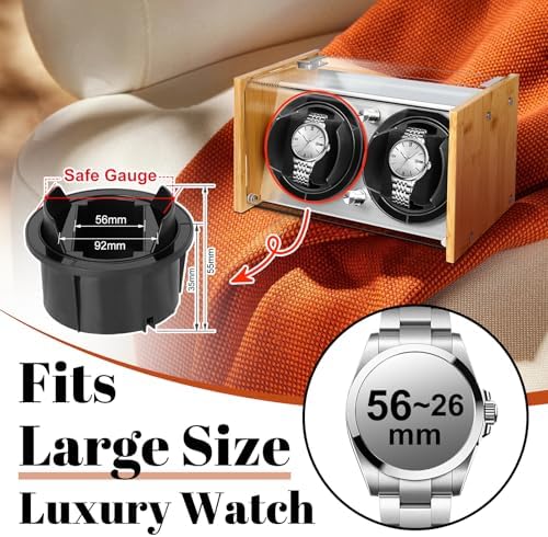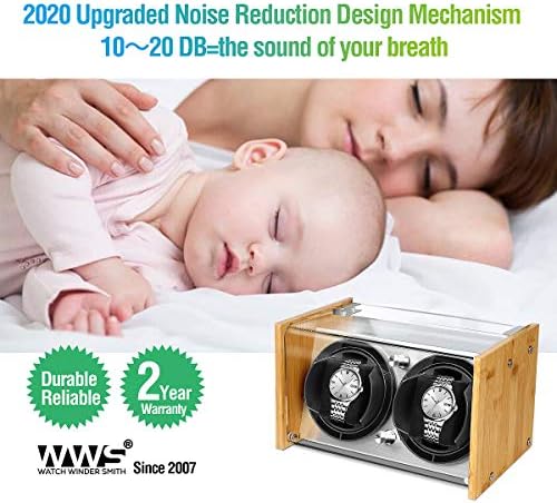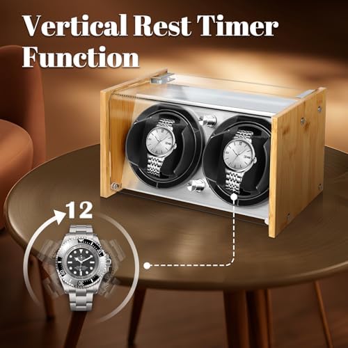 Watch Winder Smith Quiet Bamboo Watch Winder 2 for Automatic Watches, Vertical Rest Timer Function for Easy Glance