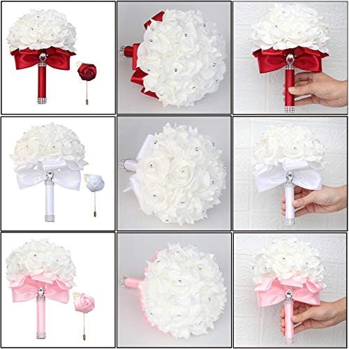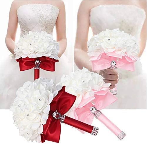 Sponsored Ad - Wedding Bouquet, Artificial Roses with Crystal Diamond Soft Ribbons, Bridal Flowers for Bride, Hand Bouquet Artificial Flowers Toss (Lavender)