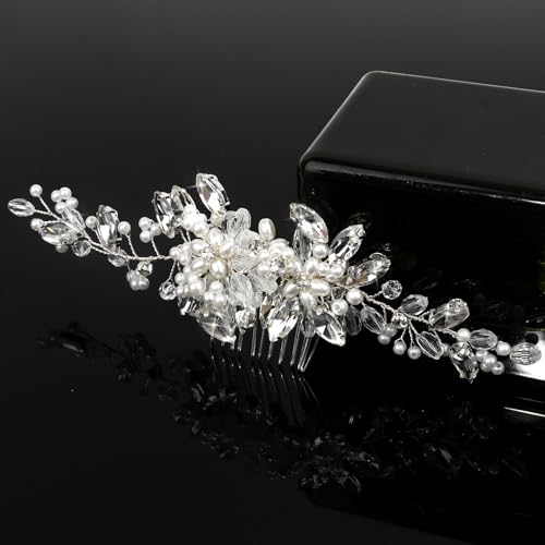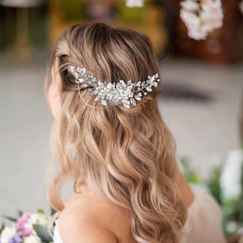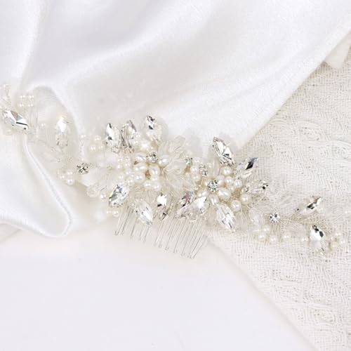 Wedding Bridal Hair Comb Rhinestone Hair Pieces for Brides Pearl Bridal Hair Pins Crystal Headpiece Wedding Silver Hair Accessories for Brides YISSION
