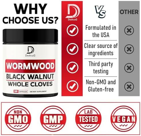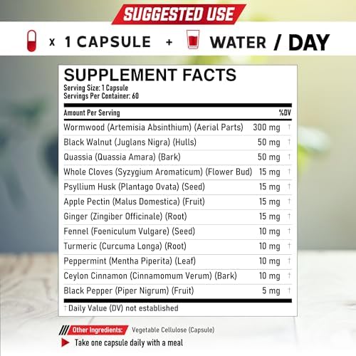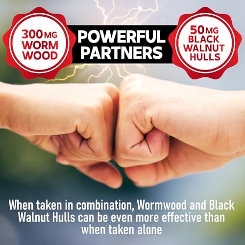 12in1 Wormwood Capsules Black Walnut Cloves, Ginger, Turmeric Curcumin & Black Pepper - Immune System - 60 Capsules