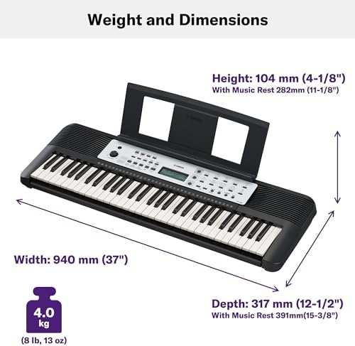 61-Key Portable Keyboard for Beginners with Built-In Songs, Quiz Mode, Music Rest, with Power Adapter YPT280