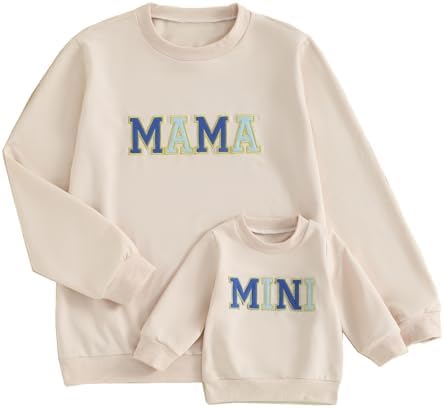 ZAXARRA Mommy and Me Matching Outfits Long Sleeve Crewneck Pullover Tops Mama Sweatshirt Mama and Mini Clothes