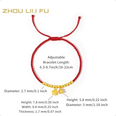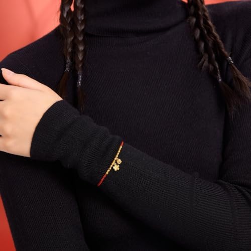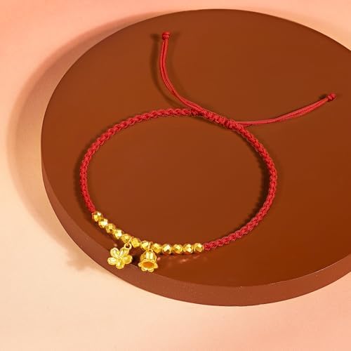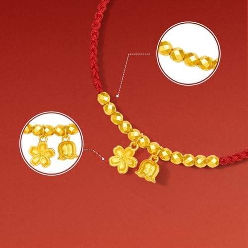 Sponsored Ad - 24K Real Gold Bracelet Lily Flower Solid Gold Beaded Red Braided Bracelets with Jewelry Box for Her Women Friends Wife Lady Lover Anniversary Birthday 16+6cm A1712698